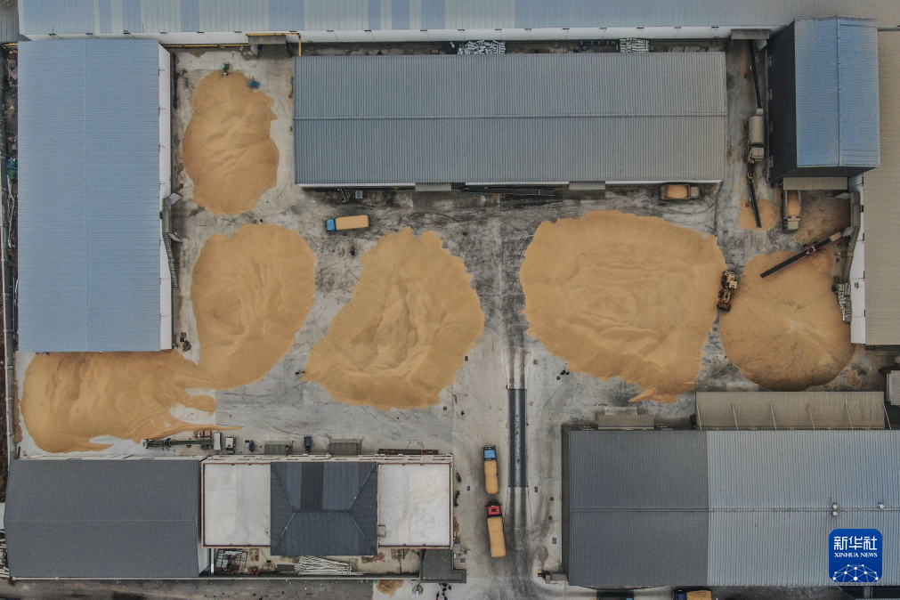 11月2日,农户将收获的稻谷送往盘锦市大洼区一家粮食加工企业(无人机照片)。新华社记者潘昱龙 摄