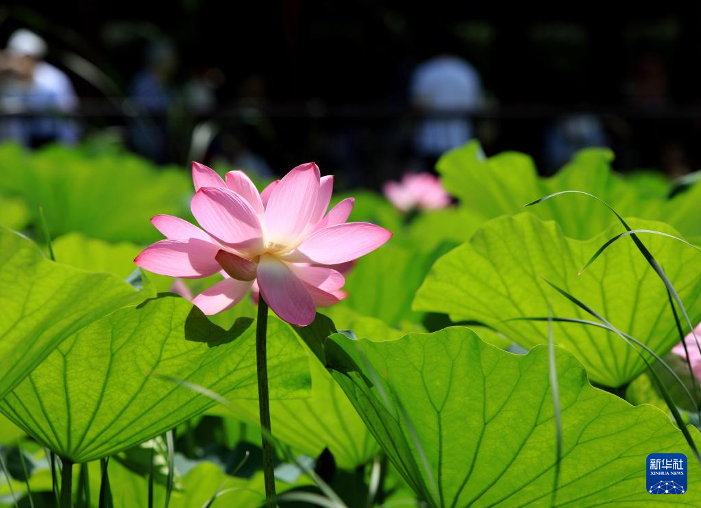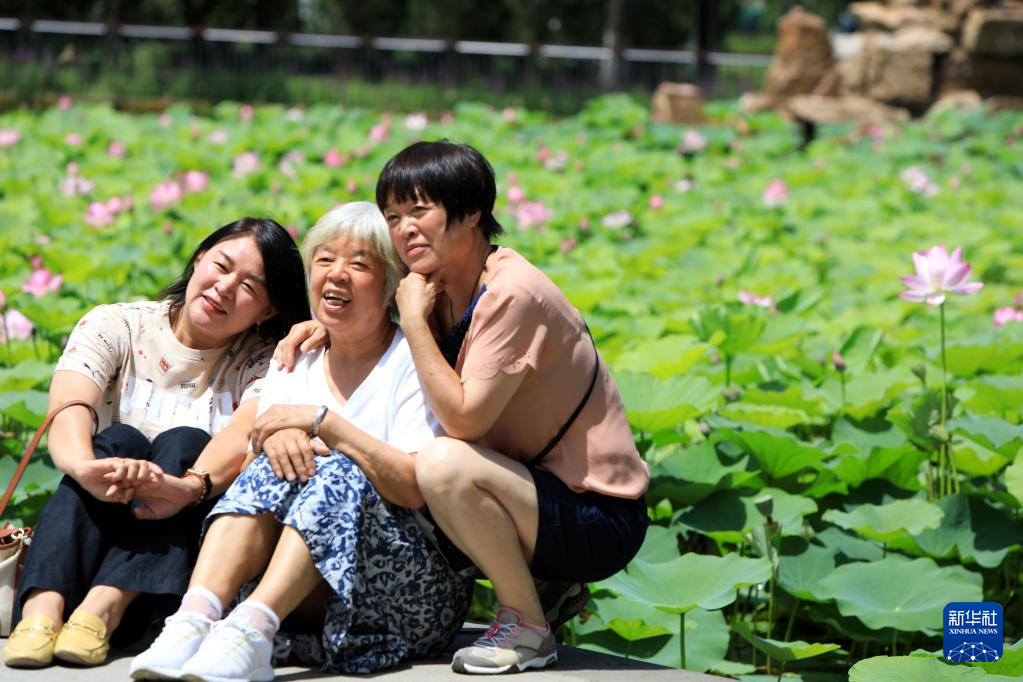 夏日,辽宁省沈阳市皇姑北塔公园荷塘的荷花竞相盛放,吸引游人前来观赏。pagebreak