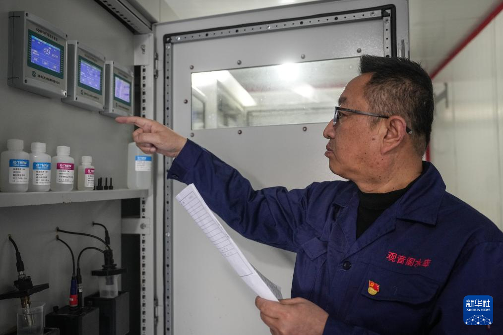 3月20日,崔兵在水库内的水质在线监测站查看监测数据。新华社记者 潘昱龙 摄pagebreak