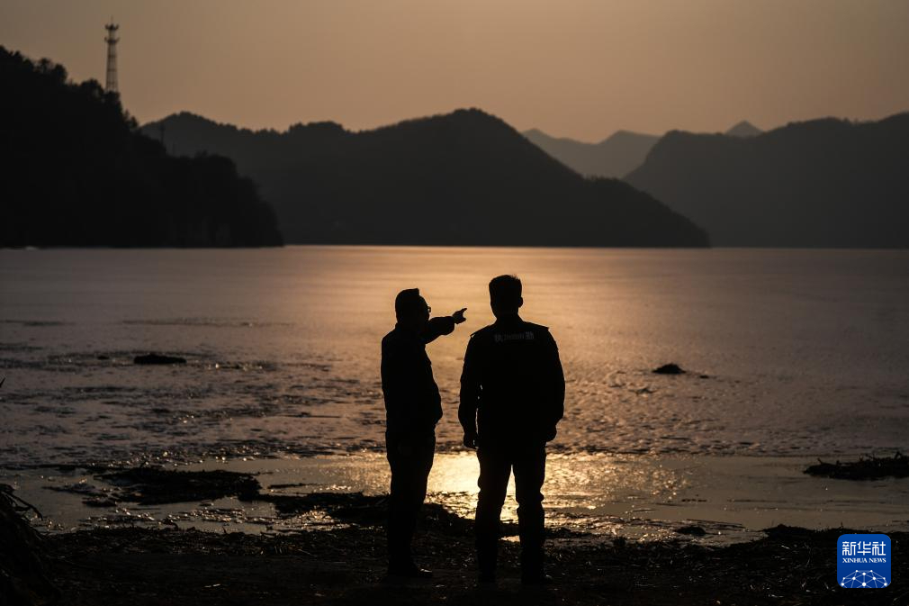3月20日,崔兵与同事在观音阁水库进行巡查。新华社记者 潘昱龙 摄pagebreak