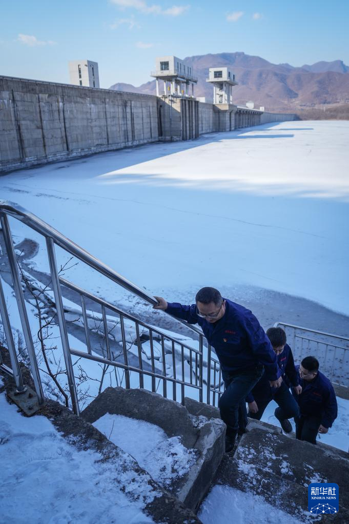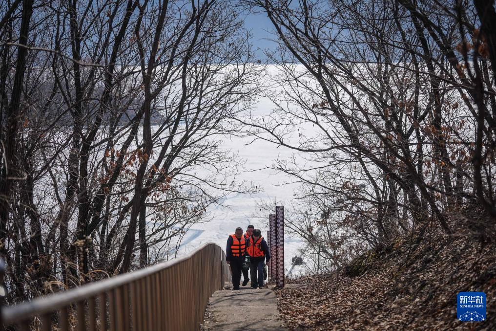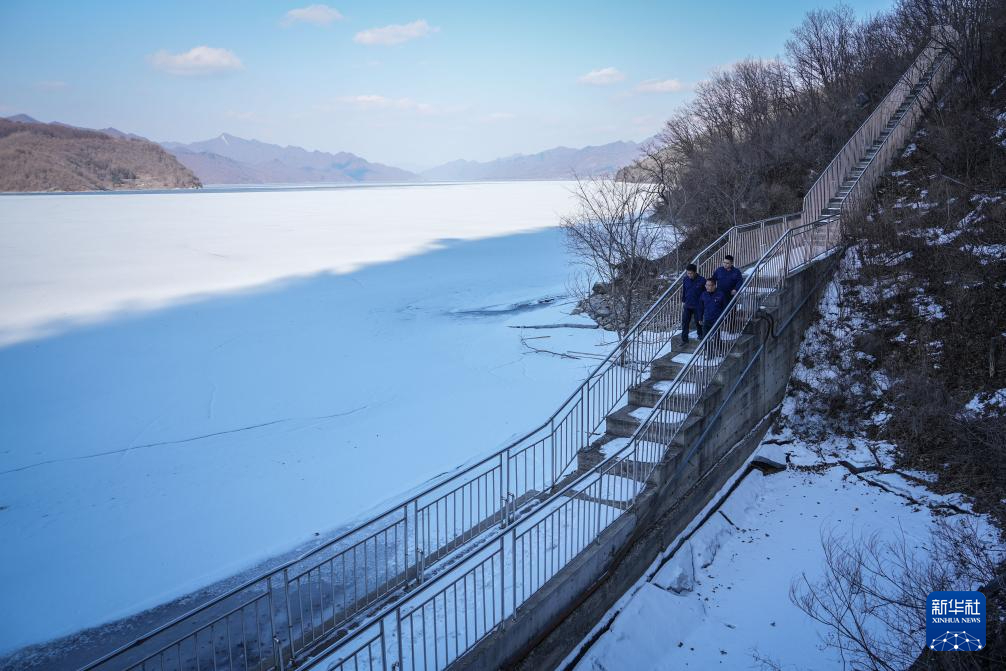 3月20日,崔兵(左)与观音阁水库马城子护库站的护库队员一起巡查。新华社记者 潘昱龙 摄pagebreak