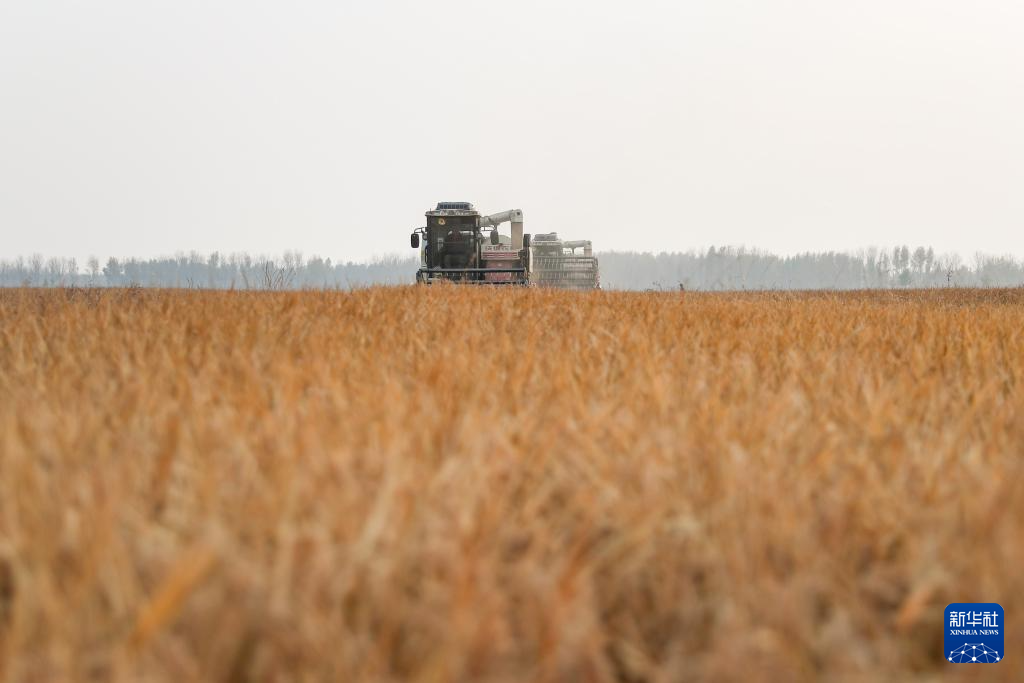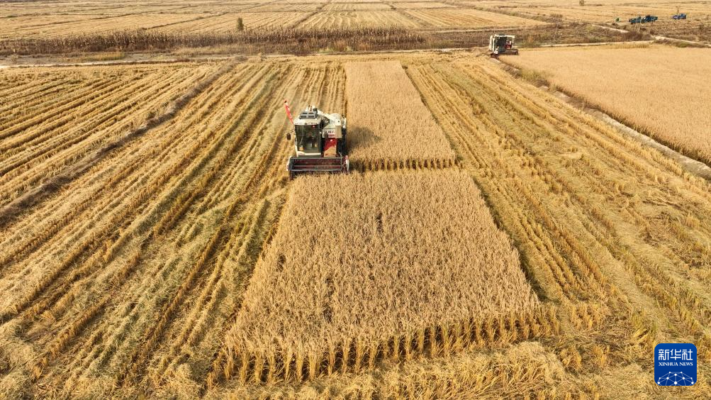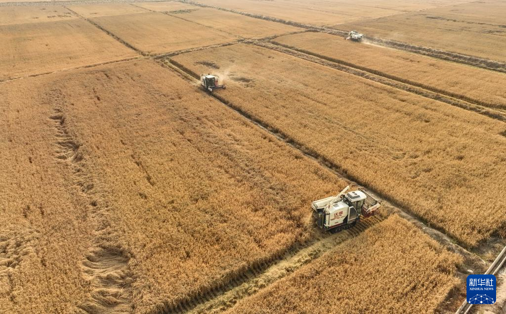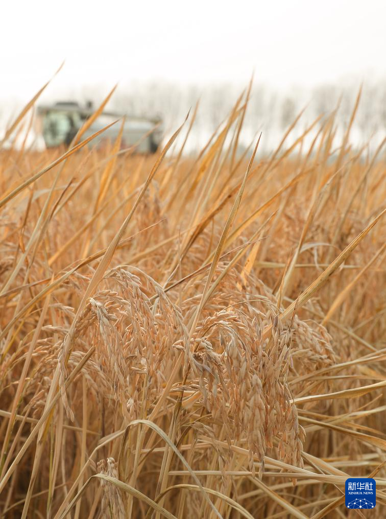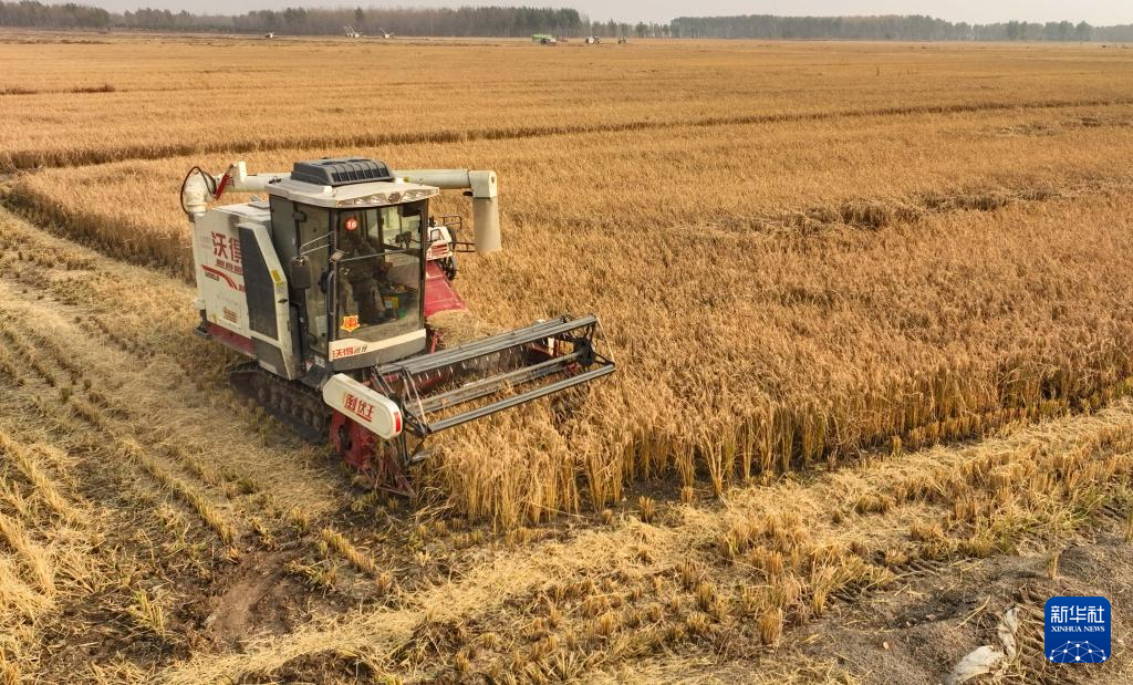 金秋时节,辽宁省阜新市彰武县大冷镇上三家子村的稻田里机声隆隆,一片丰收的繁忙景象。