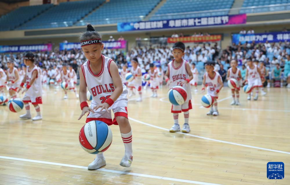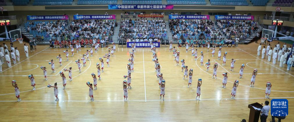 8月8日,小朋友在阜新市第七届篮球节开幕式上表演篮球操。当日,辽宁省阜新市第七届篮球节开幕。本次活动旨在塑造篮球城市形象,引领全民健身,提高人民健康水平。新华社记者 龙雷 摄pagebreak
