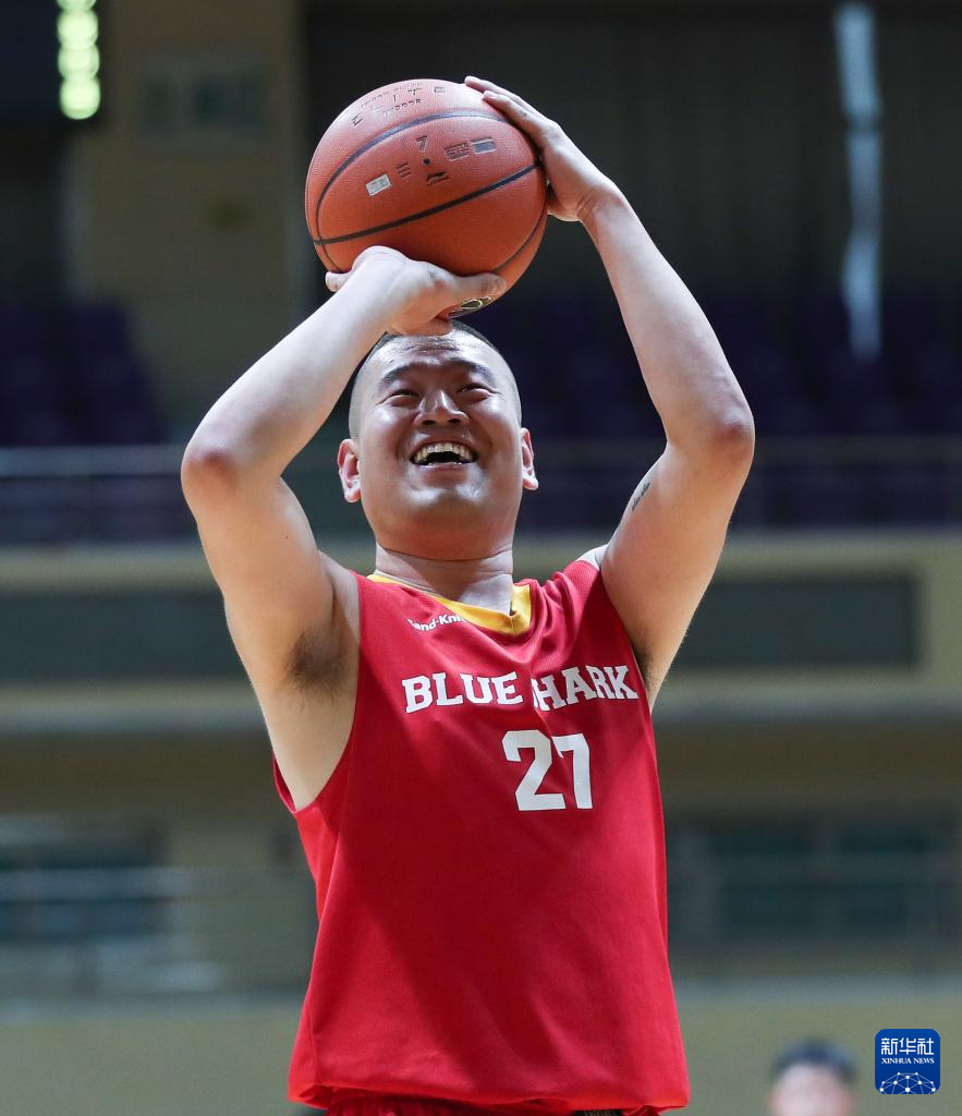8月8日,蓝鲨俱乐部球员周洋在开幕式的篮球表演赛中投篮。新华社记者 龙雷 摄pagebreak