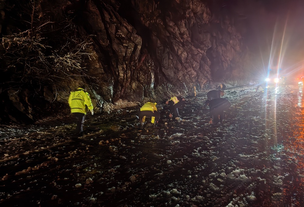 宽甸地区公安、住建等部门工作人员正在连夜清理降雪路面。(受访者供图)