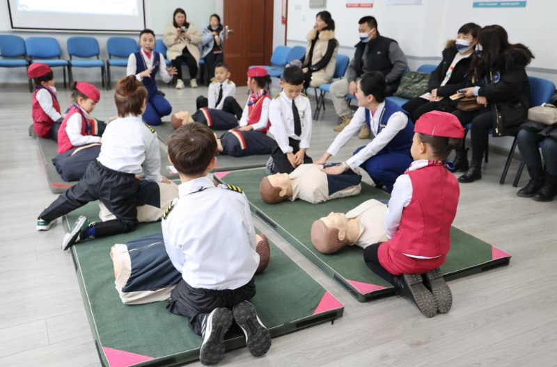 主办方还带领小朋友们变身生命护航官,打卡了辽宁省红十字会唯一对外的应急救护培训基地,体验式学习心肺复苏、aed等日常急症救护常识,掌握正确专业的急救技能;在飞机模拟舱,小朋友们实操飞机舱门,身临其境漫步体验航空场景,解锁特情处置独家体验官身份。本次活动让小朋友们全方位领略了南航北方航空主题文化旅游研学产品的独特魅力。