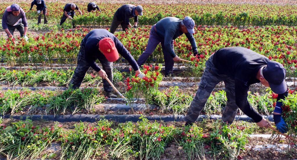 国庆假期期间,辽宁省沈阳市法库县秀水河子镇陈祥堡村种植的辣椒喜获丰收。椒农们在田间地头忙着给辣椒收割,到处一派丰收喜悦景象。(黄金崑)